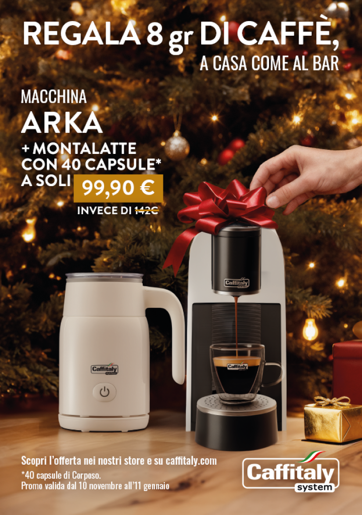 Macchina caffè Arka + 40 Capsule Corposo + Montalatte a soli 99,90€ invece di 142,00€